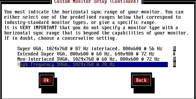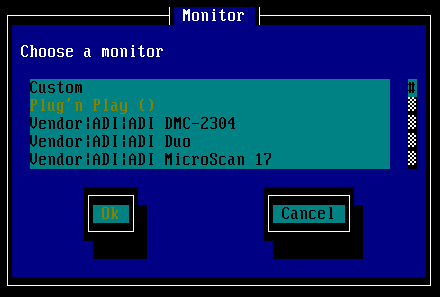 上圖按下 OK 之後會開始去設定顯示器(螢幕),一般我們都用自訂的方法去捉螢幕,所以選擇 Custom 手動設定(第一項),如下圖所示: