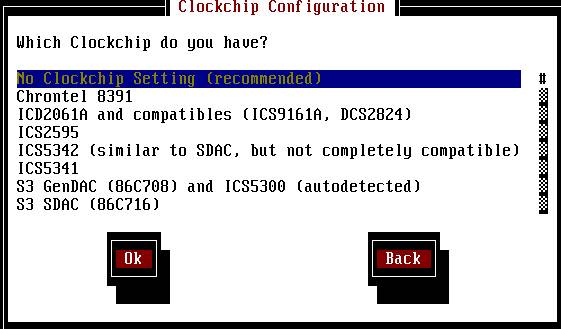 選完了記憶體大小之後,過來是選擇你的記憶時脈晶片,由於我們通常不是很清楚我們的晶片是哪一個,所以這裡只好讓系統自己捉,如下圖,直接選擇 No Clockchip Setting 即可!