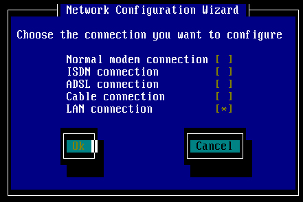 - Connection Sharing:這個就是鼎鼎大名的 DHCP ( Dynamic Host Configuration Protocol ) 主機的設定啦!就是讓您的 Linux 成為 DHCP 主機,可以分配 IP 給同一個網域內的其他電腦呢!
