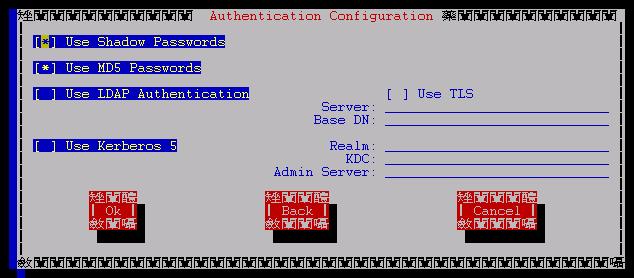 USELDAP=no <==是否使用 LDAP USEMD5=yes <==是否使用MD5 USENIS=no <==是否使用NIS USESHADOW=yes <==是否使用 shadow |