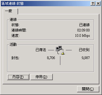 - 然後選擇『區域連線』那一項,之後會出現如下的圖示: