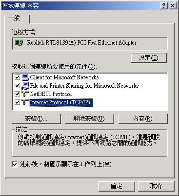 2. 在網路的設定項目中,設定通訊協定『TCP/IP』與『BetBEUI』;