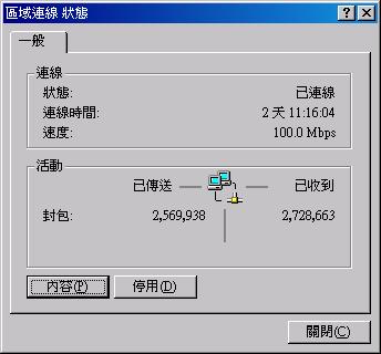 這個畫面告訴你目前的網路狀態,然後按下『內容』會出現如下的畫面:
