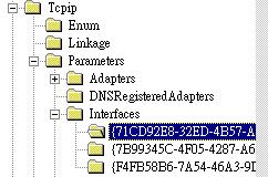 - 選擇『HKEY_Local_Machine』>『SYSTEM』>『CurrentControlSet』>『Services』>『Tcpip』>『Parameters』>『interface』,有點像下面的圖示:
