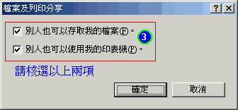 然後開始增加使他人可以用你的檔案及印表機的選項: