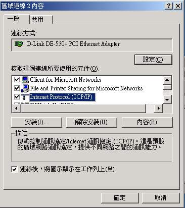 然後點選『Internet Protocol (TCP/IP)』這一項,出現下面畫面: