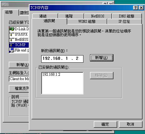 上面的『IPX/SPX相容通訊協定』、『NetBEUI』及『TCP/IP』均是網路上的通訊協定,通訊協定簡單的來講,就是網路上電腦與電腦可以互相認識的一種協定,如果你需要詳細的瞭解每一種通訊協定,可以來這裡看一下: