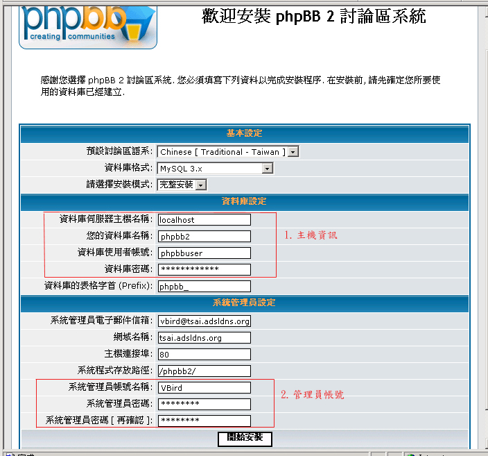 phpBB 2.0.x 的安裝